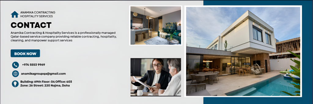Anamika Contracting & Hospitality Services offers professional contracting, hospitality, cleaning, and manpower solutions across Qatar, ensuring quality, reliability, and customer satisfaction.